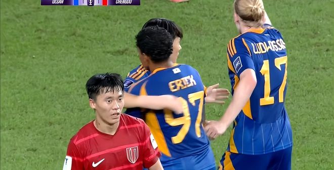 随着时间的推移,成都蓉城这边的节奏开始变慢,而蔚山HD的节奏比我们快很多,这就是中超与K联赛的差距。比赛第76分钟,蔚山HD中场送出秒传,穿透了整条成都的防线,替补登场的严原相单刀捅射被挡出,随后补射破门,蔚山HD1比1扳平比分。随后成都蓉城越来越吃力,第87分钟成都后场被断球打反击,门将做出精彩扑救才保证没有在丢球。