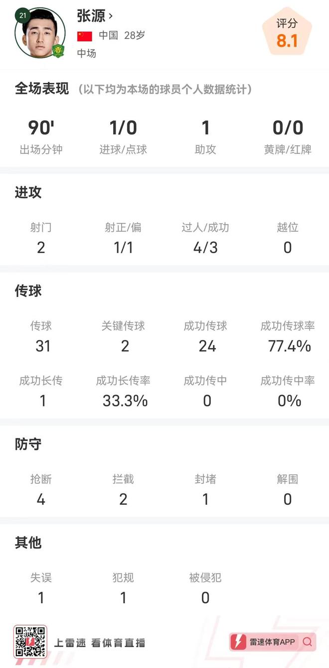 雷速体育9月18日宣 在刚刚结束的一场亚冠二级联赛中,北京国安2-2战平河内公安,本场比赛国安球员张源表现出色,贡献一传一射。
