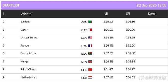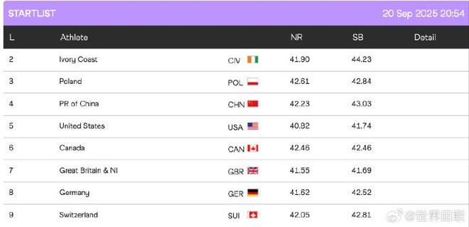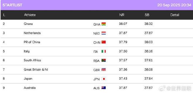 2025年东京田径世锦赛中国队明晚接力项目分组出炉,男子4x100米接力与日本同组。