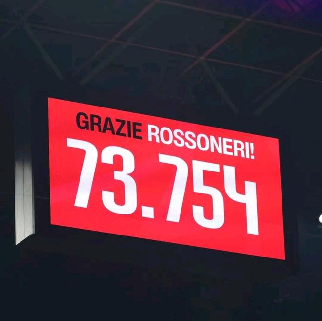 米兰对阵那不勒斯的焦点比赛,吸引了73754名球迷到场观赛,而圣西罗球场的标准座位数为75923。