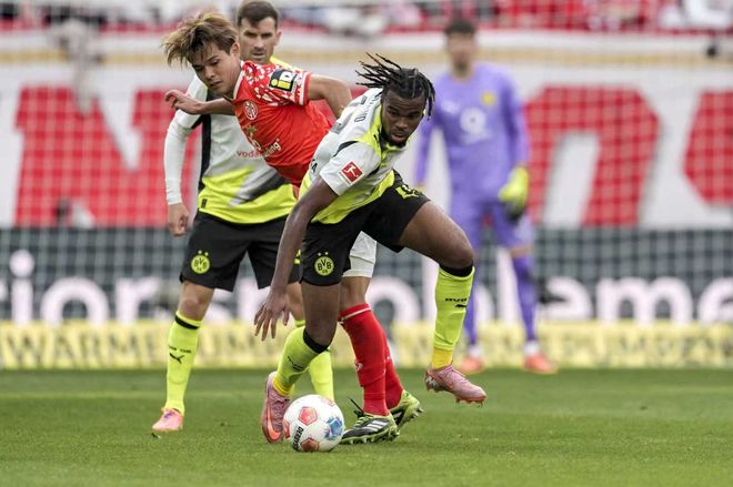 在周六的德甲较量中,朱利安·瑞尔森与卡里姆·阿德耶米先后破门,助多特蒙德上半场便确立优势。战至第67分钟,美因茨门将罗宾·泽特纳被红牌罚下,让志在紧追榜首拜仁慕尼黑的多特蒙德最终轻松取胜。