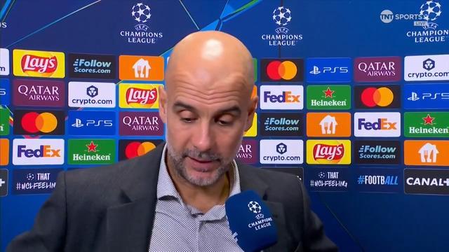 率队在欧冠联赛阶段第2轮客场2-2战平摩纳哥之后,曼城主教练瓜迪奥拉接受了来自TNT体育的采访。
