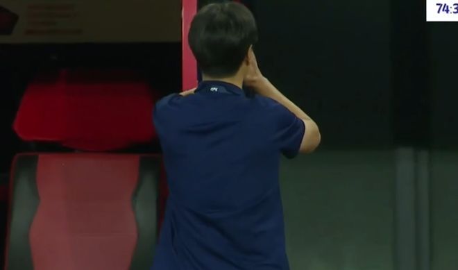 看到兰克尔泽踢飞必进球,本来准备庆祝的李霄鹏懊恼地转过身去双手抱头,而兰克尔泽也同样双手抱头,为自己错失破门良机而遗憾。