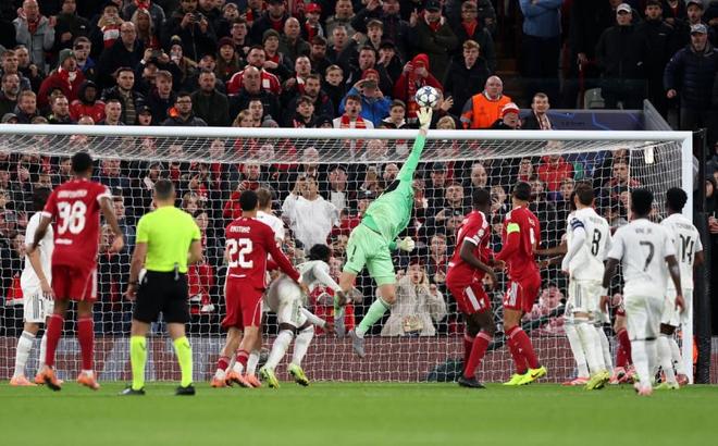 第23分钟,维尼修斯直接放倒了前插的布拉德利,吃到黄牌!送给了利物浦一个位置非常好的定位球,索博斯洛伊将球送入禁区,范戴克头球偏出。几分钟后,利物浦卷土重来,维尔茨横传中路,索博斯洛伊在点球点附近的劲射,被出击的库尔图瓦神奇扑出!皇马逃过一劫。