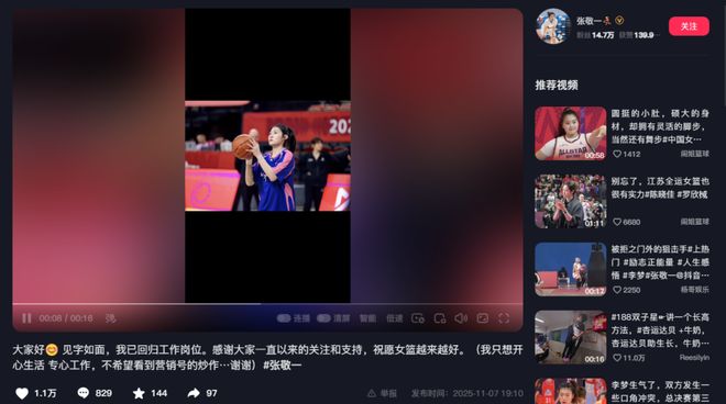如今张敬一通过社媒晒出自己的照片,并且正式宣布告别WCBA赛场:“大家好,见字如面,我已回归工作岗位。感谢大家一直以来的关注和支持,祝愿女篮越来越好。(我只想开心生活,专心工作,不希望看到营销号的炒作……谢谢)。”