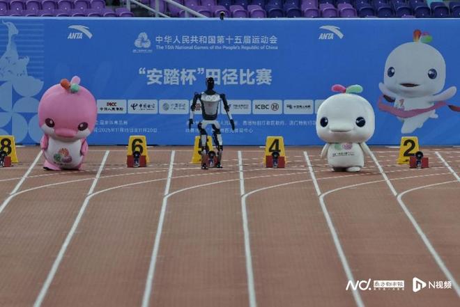 11月17日晚,十五运会田径比赛继续在广东奥体中心进行。当晚将决出男女100米金牌。在此之前,吉祥物和机器人在百米赛道上PK,为比赛暖场。