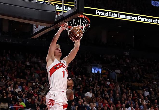 本场比赛中,猛龙的替补侧翼新星格雷迪-迪克(Gradey Dick)的表现还是差了一些的。迪克全场出场7分34秒,投篮3中0,三分线外1中0,全场1分未得,仅贡献1篮板的数据,还有2次失误和1次犯规,正负值为-11。迪克在攻防两端的表现都很不理想,他的进攻效率糟糕,得分能力和投射能力都没有发挥出来,在进攻端完全没有起到任何的作用。不仅如此,迪克在防守端的表现也是非常糟糕的,他的防守能力本来就比较一般,同样没有在这方面起到很好的效果。迪克的出场时间并不多,但是他在场上时球队的局面实在是太差了一些。这种情况下教练组当然也不敢更多地使用他了。
